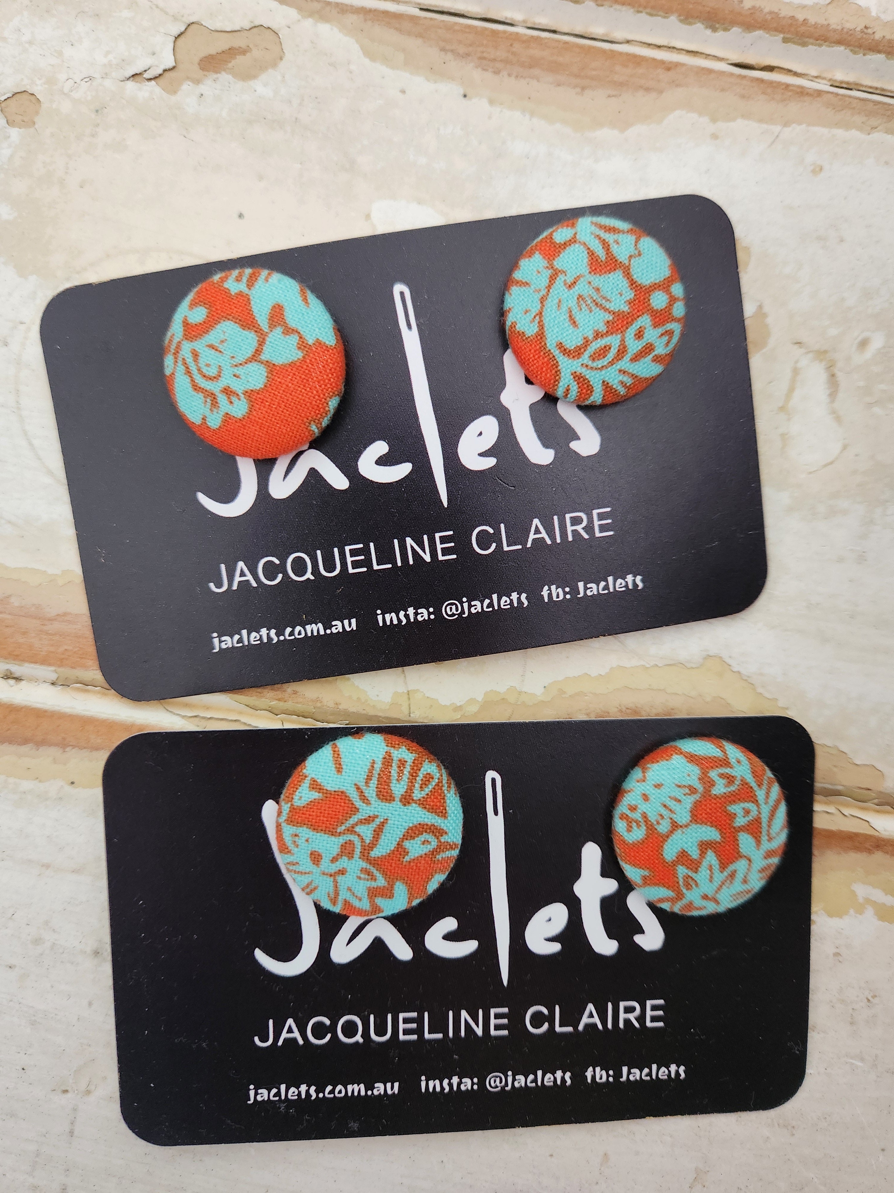 23mm sized fabric studs in vibrant orange and spearmint. Wear these with a black or white shirt to add some fun to your outfit.