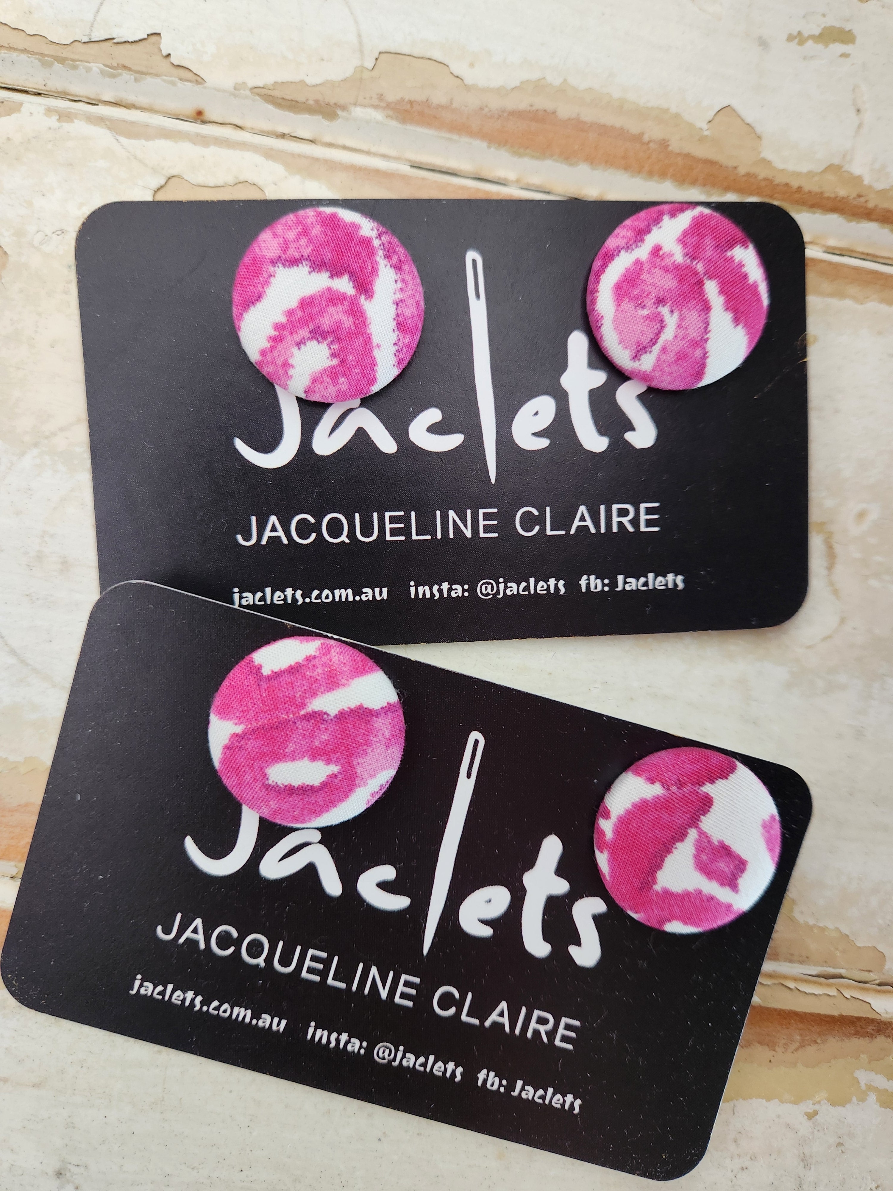 Pink and white print fabric studs, add these to your ears for some fun. They're 23mm sized, and they have surgical steel post and backing.