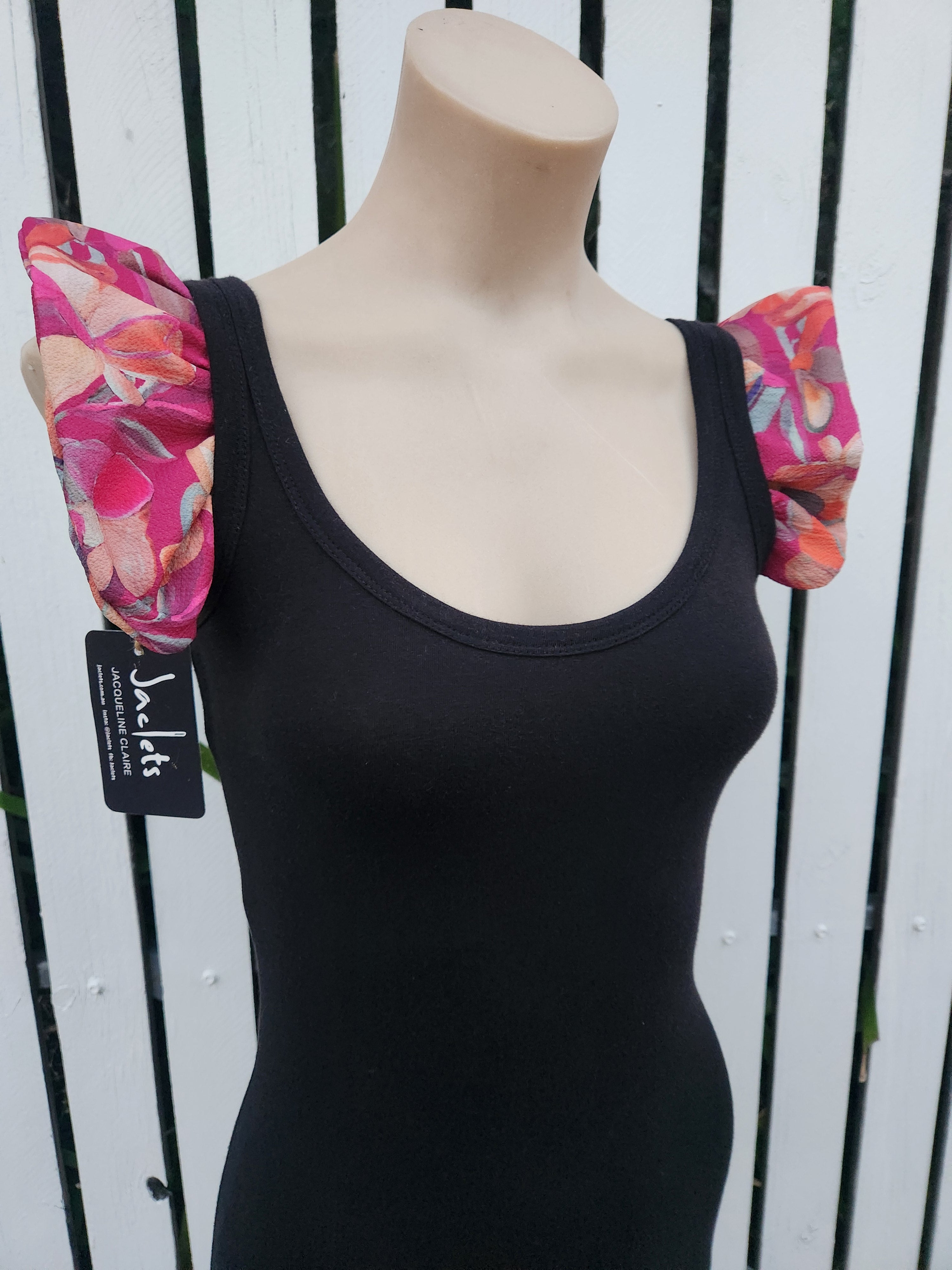 A classic black top with a playful pop of colour — perfect for effortless, everyday wear