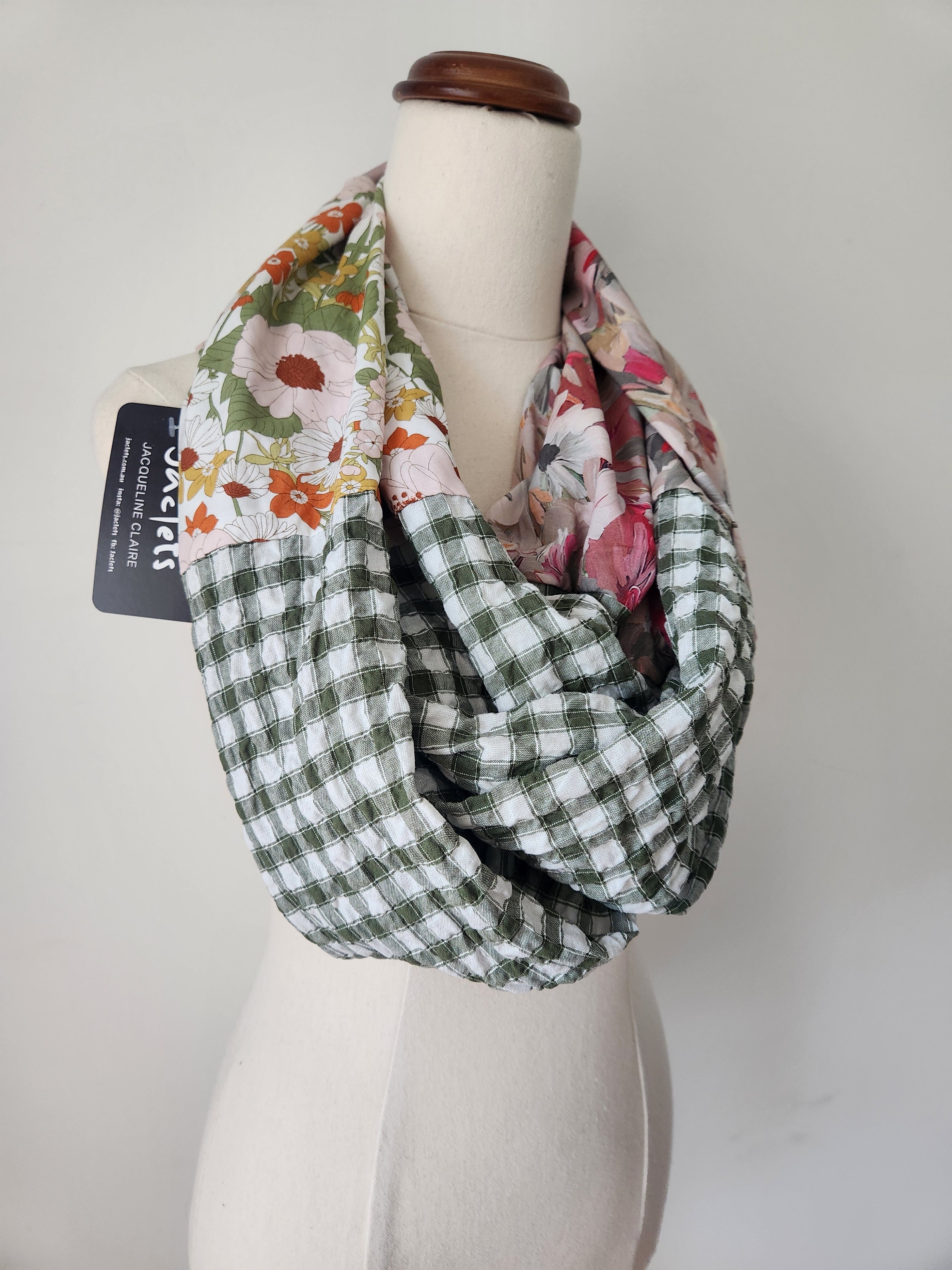 This one of a kind piece is made from 3 different prints in cotton and rayon fabrics, and is completely unique.