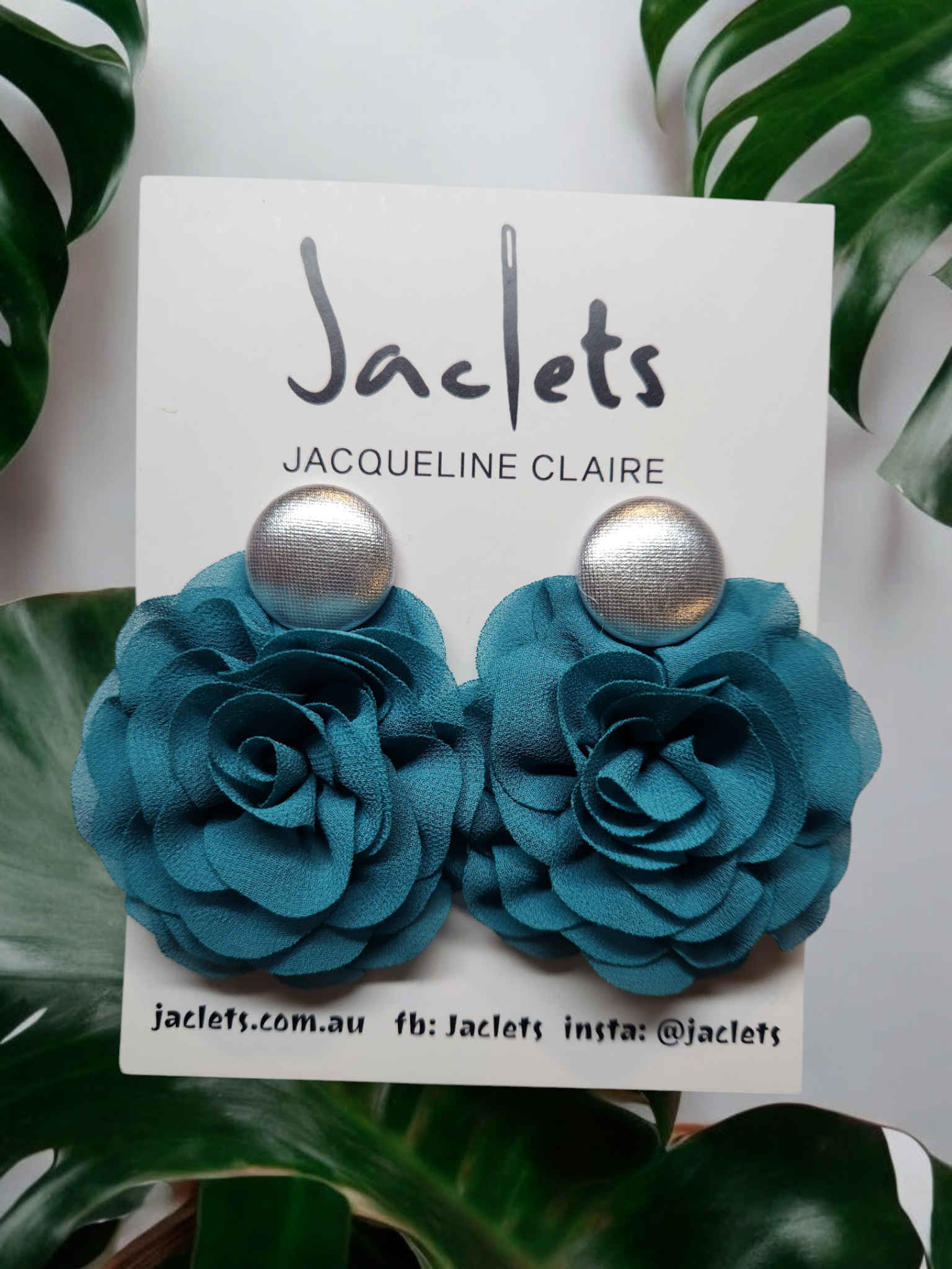 This gorgeous pair is made from ruffled chiffon to create a flower, and the stud is silver fabric. These are a beautiful addition to an outfit, and they'll get you all the compliments!