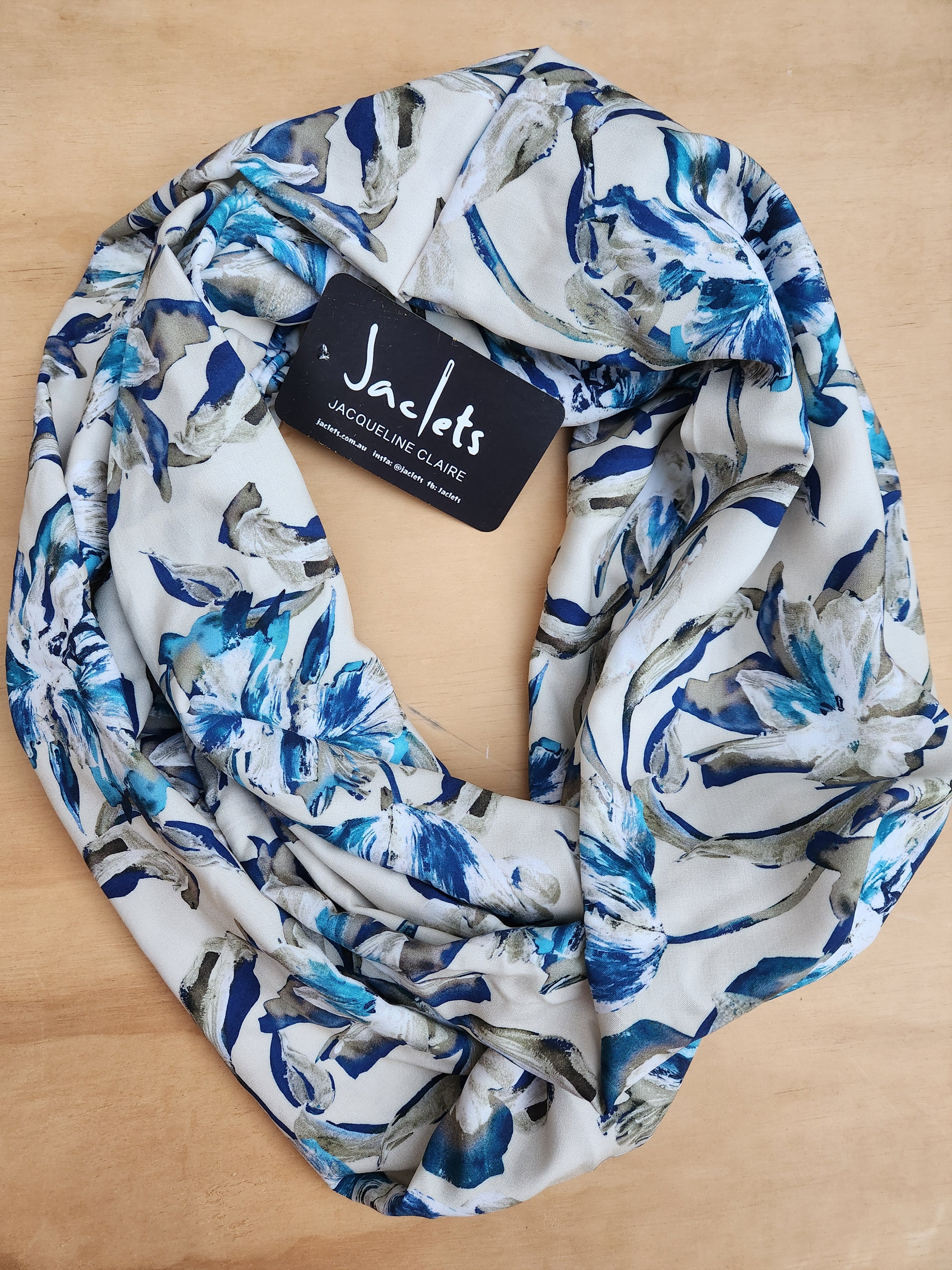 Soft, elegant and effortlessly stylish, the blue blooms bring a beautiful touch of colour to any outfit. Featuring painterly blue florals on a soft vanilla background, this piece blends cool ocean tones with a timeless floral design.