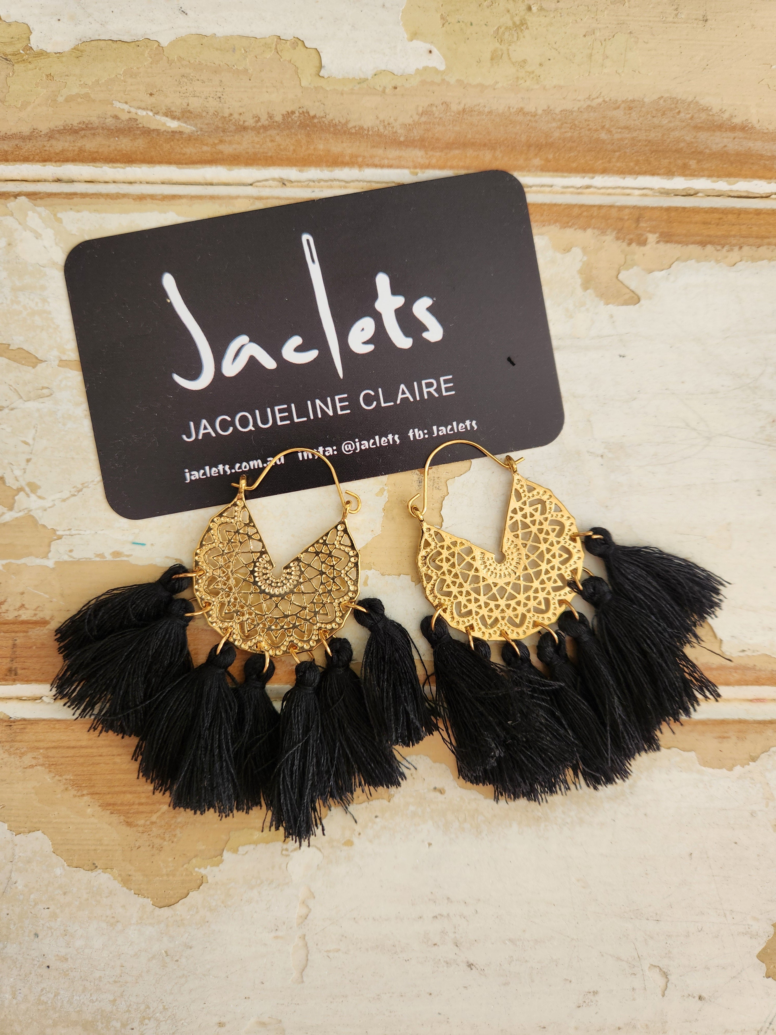 Such a gorgeous pair of tasselled earrings! Gold with black tassels. Nice and lightweight, 7cm long. A great basic to wear with lots of outfits.