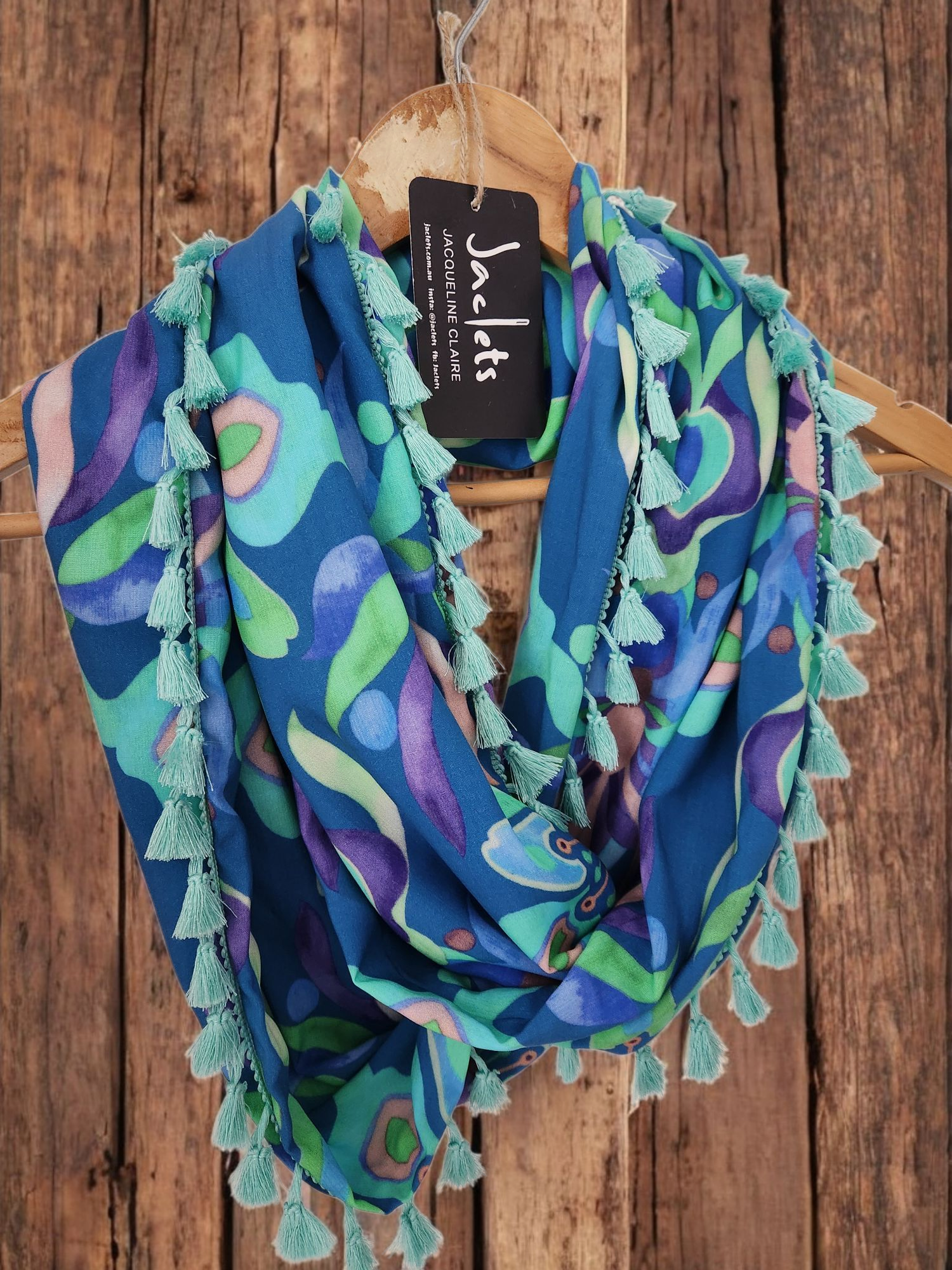 This print is a stunning mix of teals, spearmints and mint with matching spearmint cotton tassels. If you love blues, aquas, mints - this will be a favourite piece to wear!