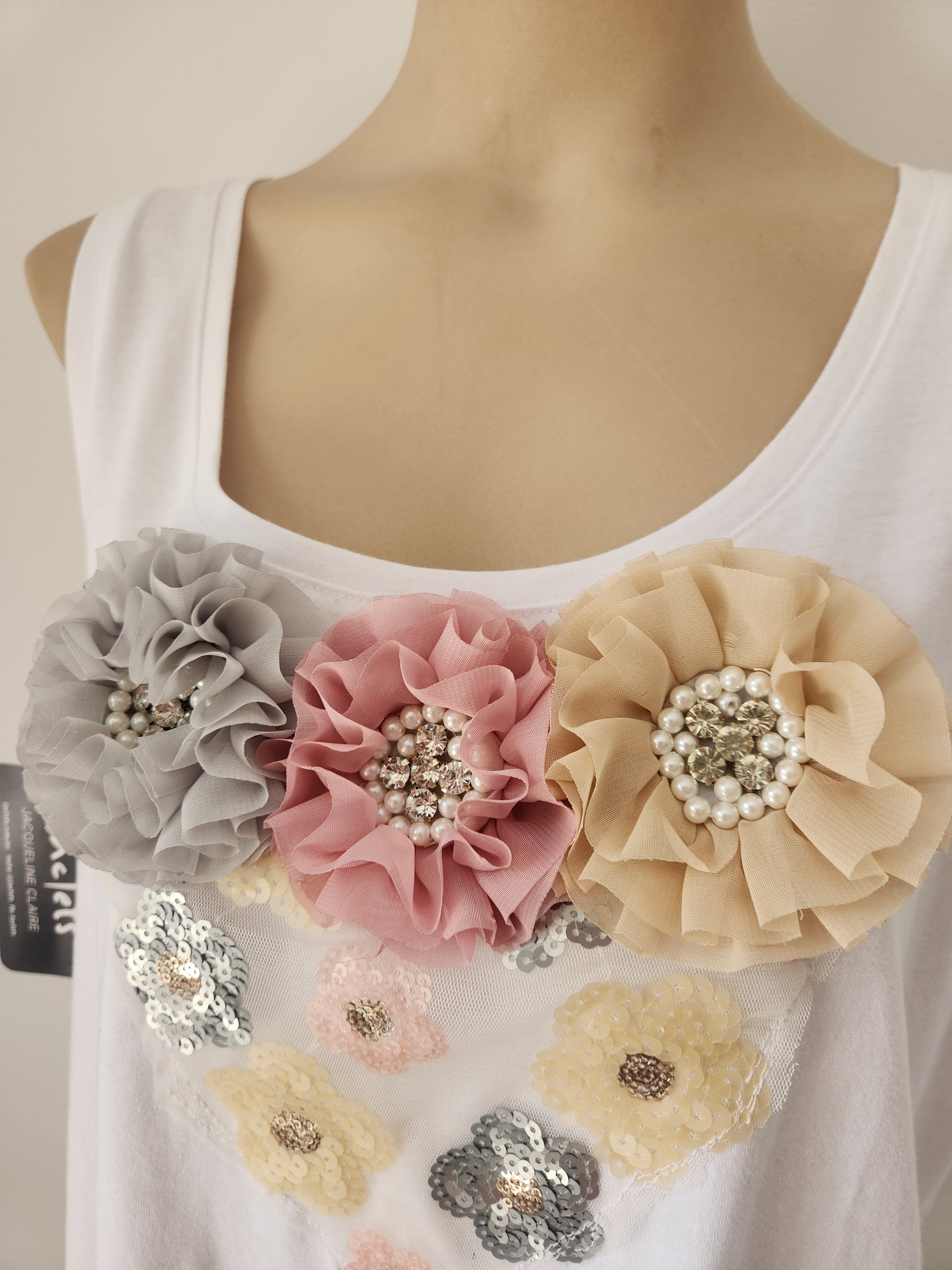 The top is flat white cotton fabric and sizing is regular, so whichever dress size you are.