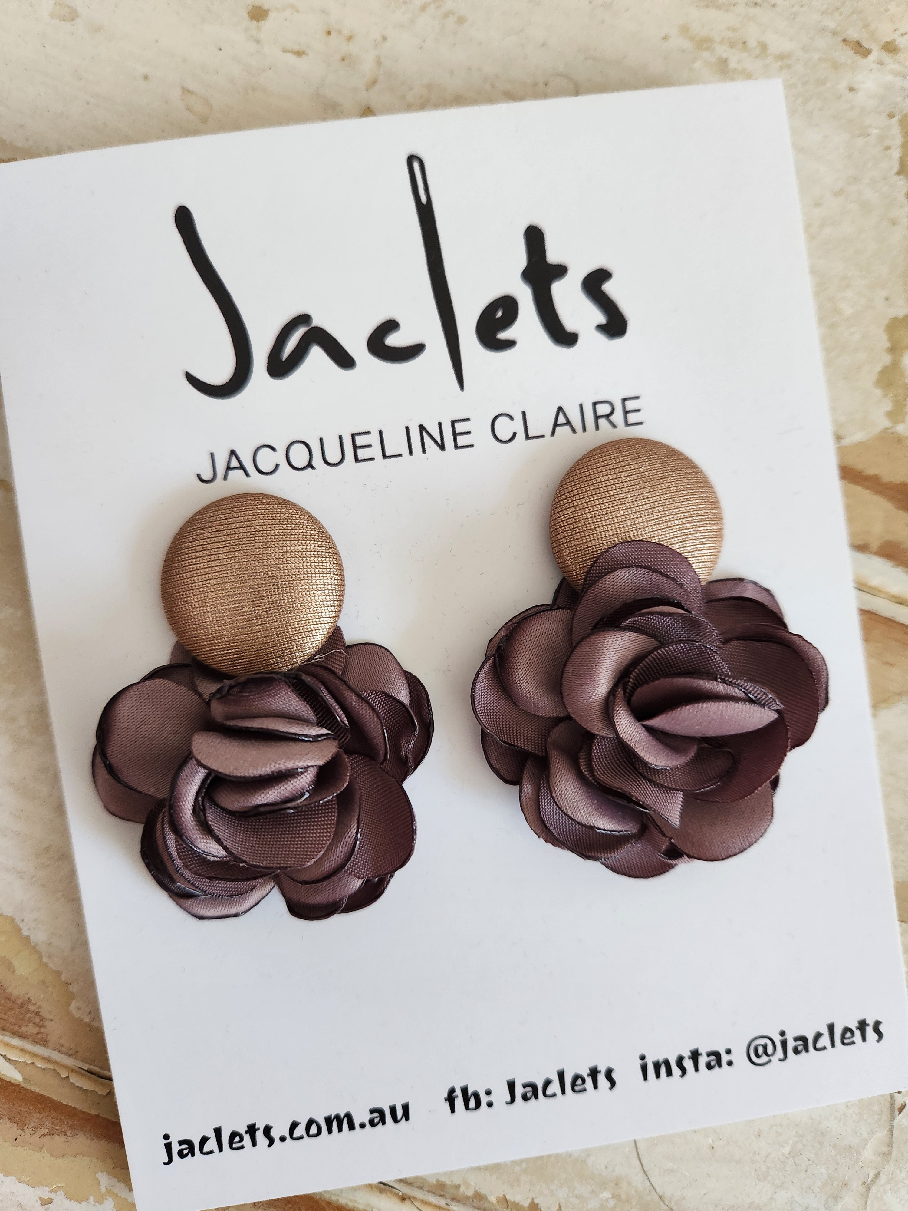 Dreamy handmade mocha petals with gold fabric stud. This little pair is a mini version of some of the other larger styles. Total length is about 5cm and they're so lightweight you won't know you've got them on... others, however, will - because you'll get all the compliments!