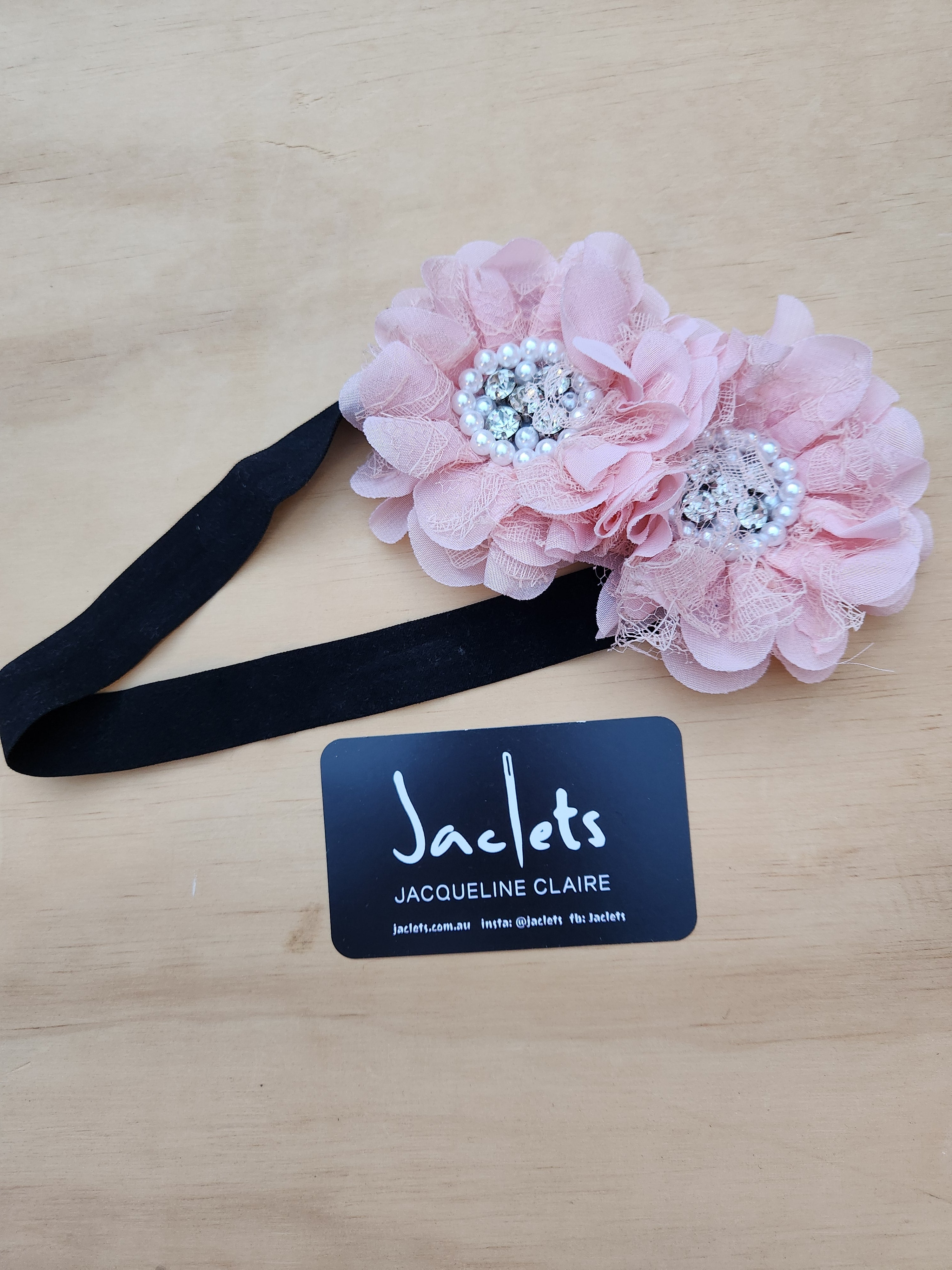 Peach flowers on a soft stretchy black band, wear it with your hair up or down.