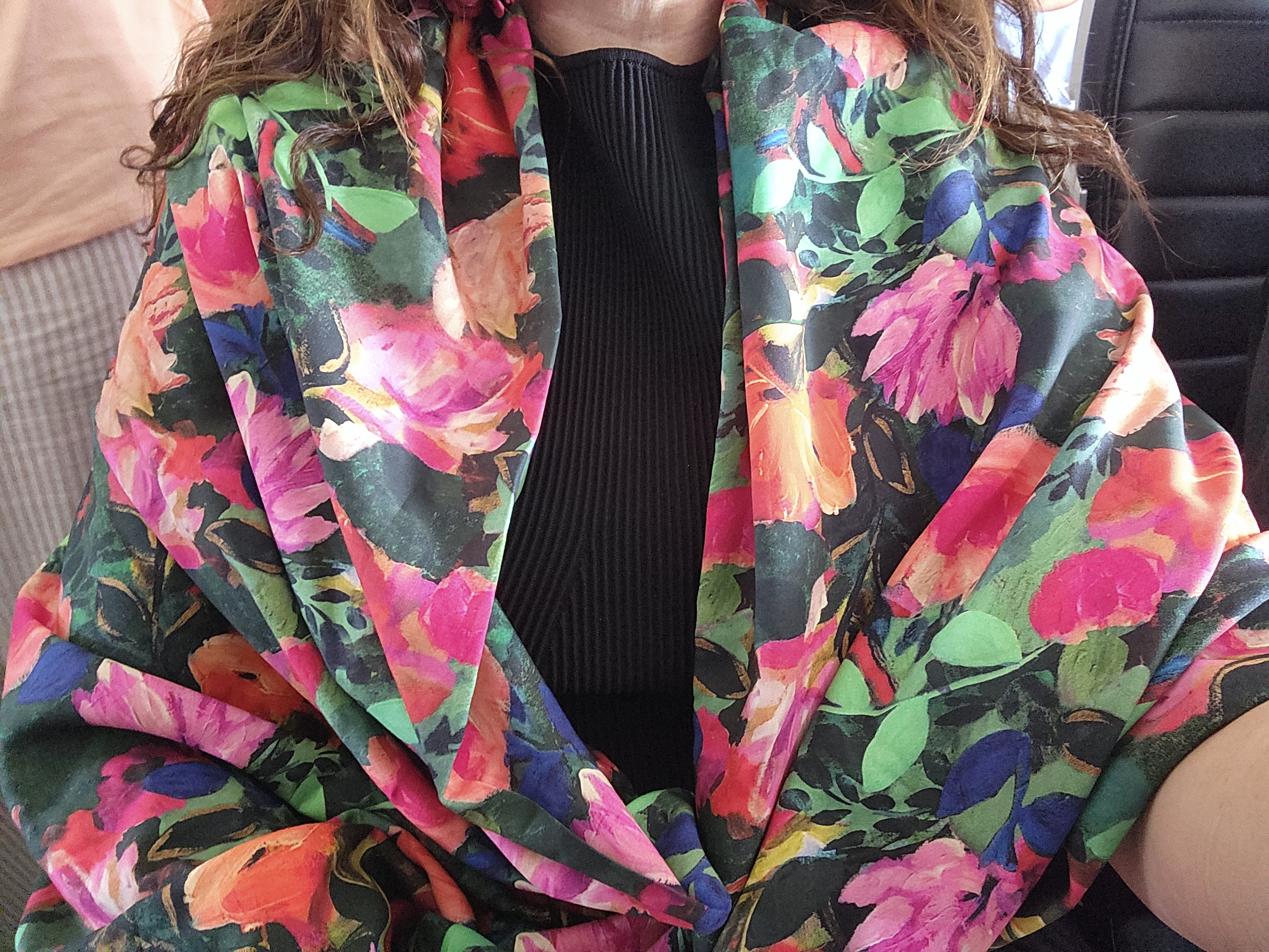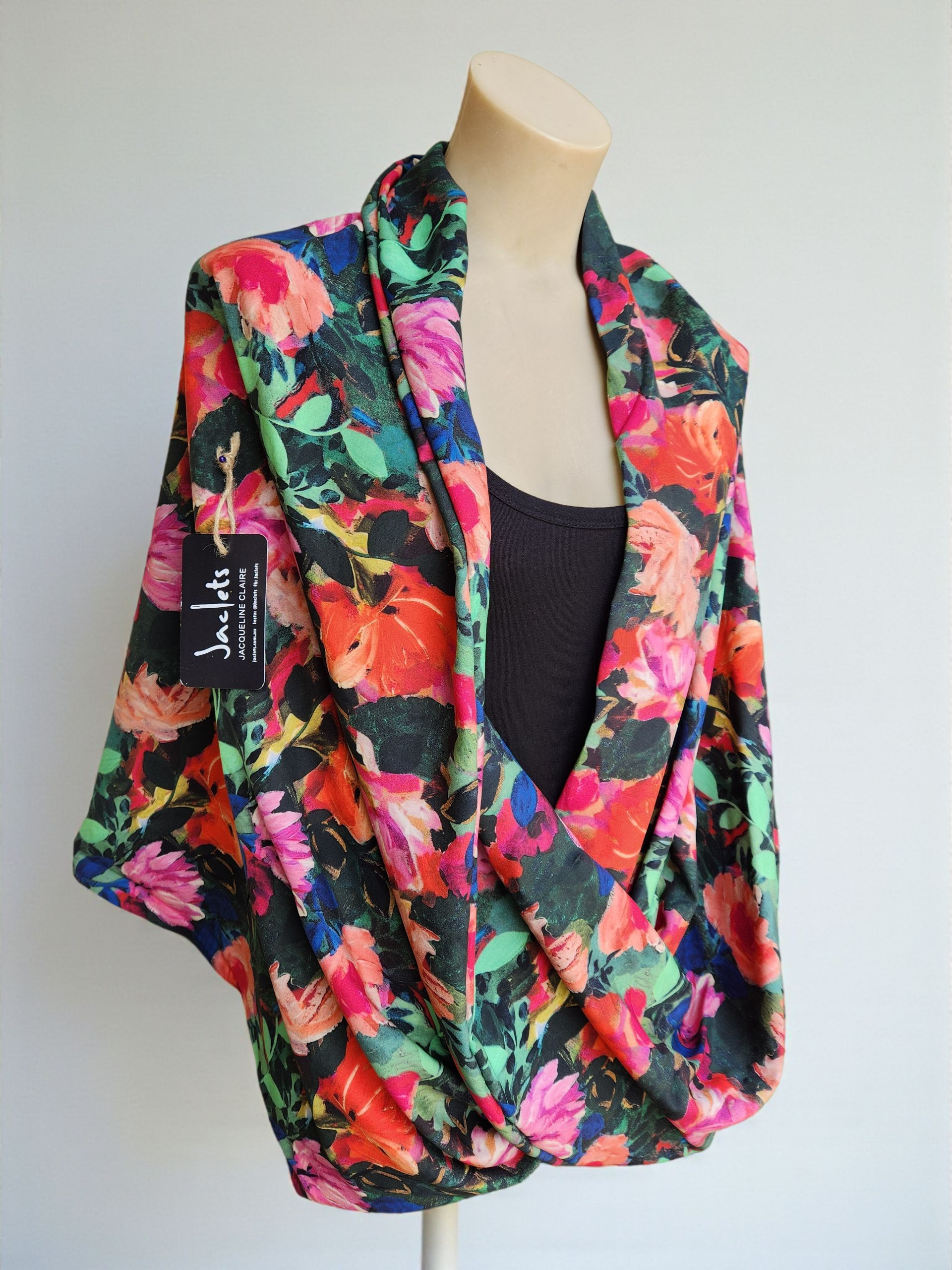 Add a burst of colour and effortless elegance to any outfit with this beautifully draped handmade cover-up.