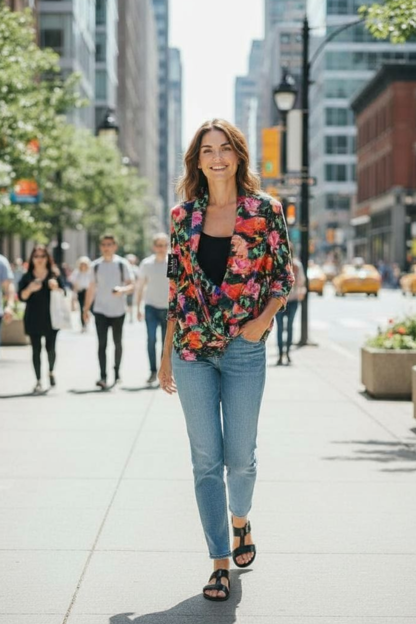 Perfect for layering over a simple outfit, it offers light coverage when it’s cool and sun protection for your arms and shoulders when the weather warms up.