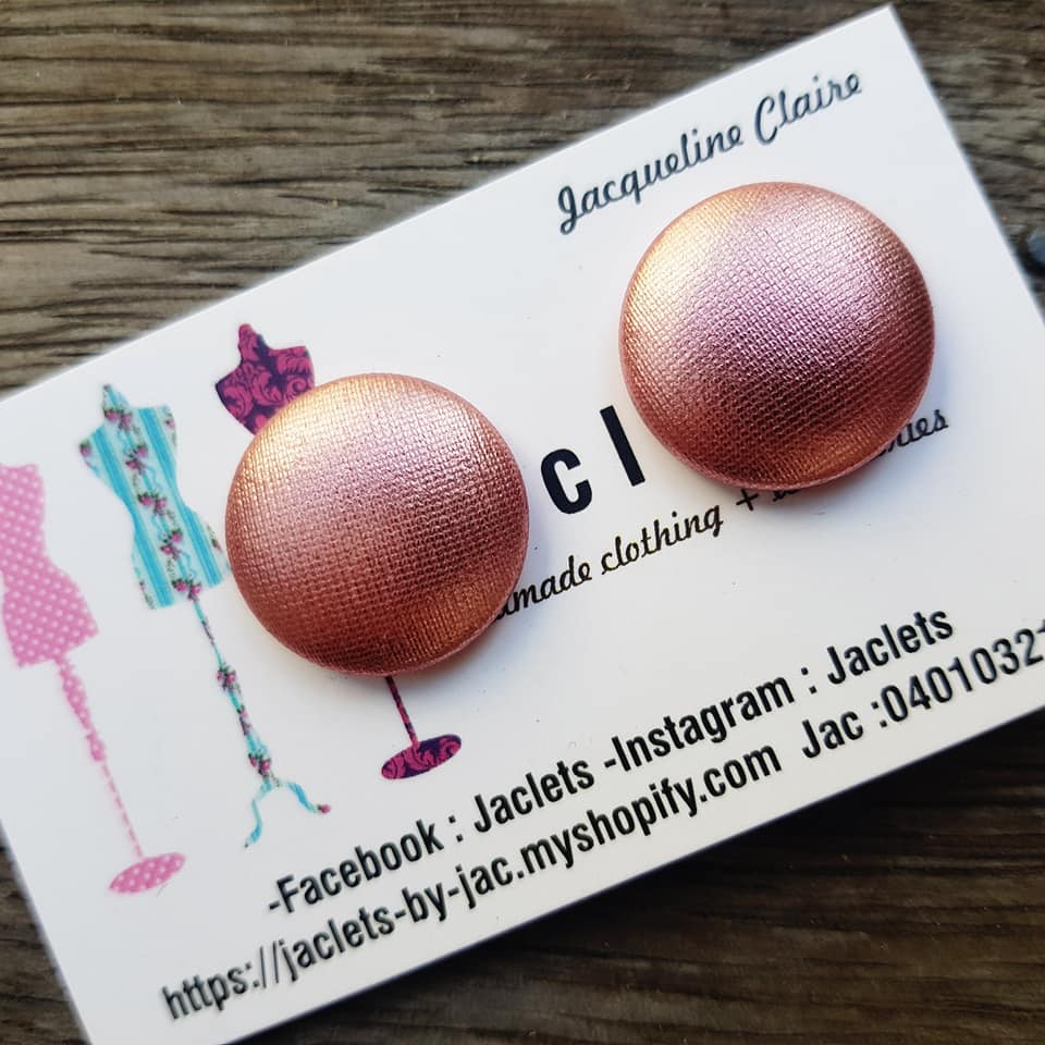 Rose pink metallic fabric studs, 23mm size. A great little basic to wear with lots of outfits.