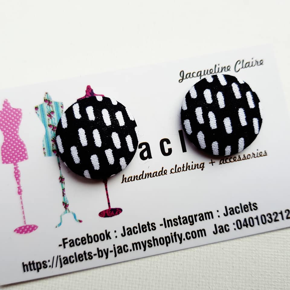 Black and white fabric studs, 23mm size. Basic colours with wear with lots of outfits. Surgical steel backing.