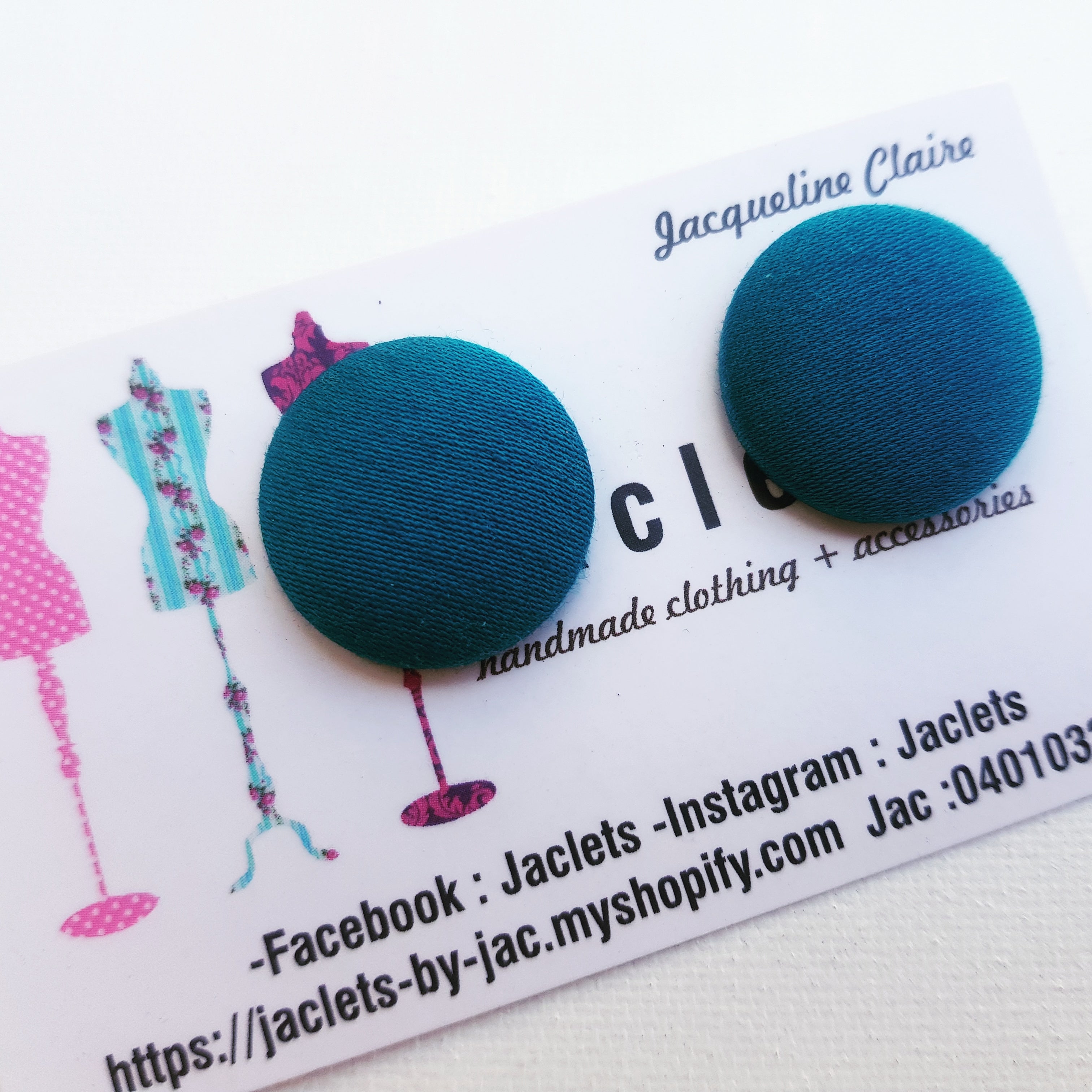 Pretty teale fabric studs, 23mm size. Backing is surgical steel.